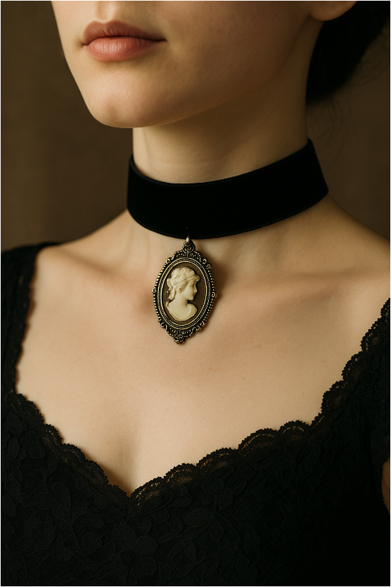 Classical and medieval symbolismIn the Greco‑Roman world, necklaces frequently featured pendants of mythological figures. In medieval Europe, the Christian cross pendant became a ubiquitous symbol of faith and protection. Elaborate collars and pendants signified nobility, while simple string necklaces were worn by commoners. Though materials were often limited to local metals and glass beads, the necklace’s role as a spiritual and social marker persisted. The Victorian Era – sentimentality and chokersThe nineteenth century blended romance, mourning and innovation. Following Prince Albert’s death, Queen Victoria wore jet‑black mourning jewelry; the trend spread across Europe. Lockets containing hair or portraits helped Victorians keep loved ones close. At the same time, chokers gained popularity—Queen Alexandra reportedly wore velvet or pearl chokers to conceal a scar, inspiring dog‑collar designs set with diamonds and lace. Chokers were often paired with gowns with high necklines or off‑the‑shoulder bodices, emphasising the throat and collarbone.